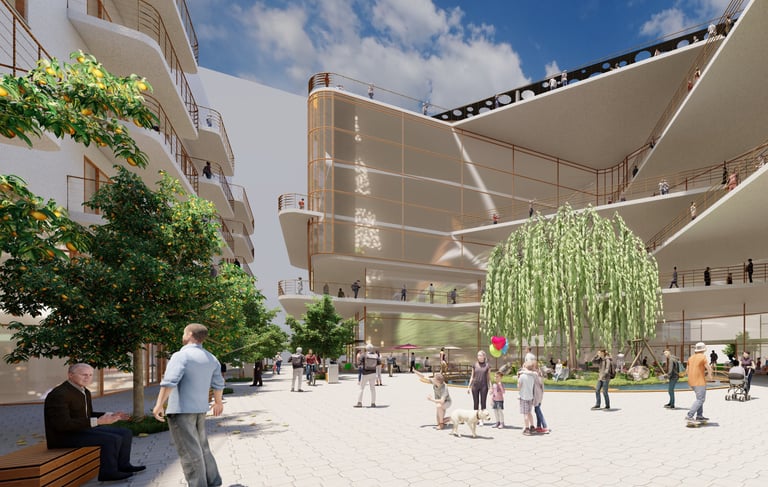 This project focuses on developing an innovative residential complex in Tel Aviv's Florentin neighborhood. The building combines family housing with commercial and cultural spaces on the lower floors, offering a rich urban connection while preserving the neighborhood's unique character.
