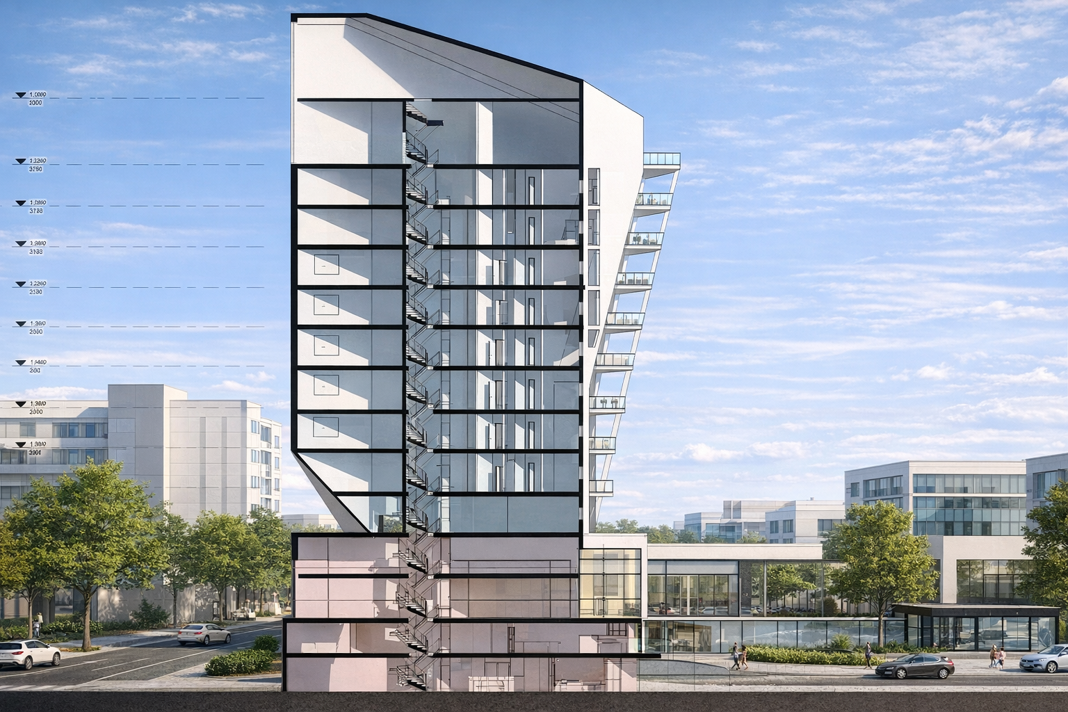 The project is located between Rothschild Street and Yehuda Halevi Street, serving as a central artery and passage between the two streets. Since there is no official and clear transition between them, I believe it would be appropriate to place the project on Bezalel Yaffe Street.